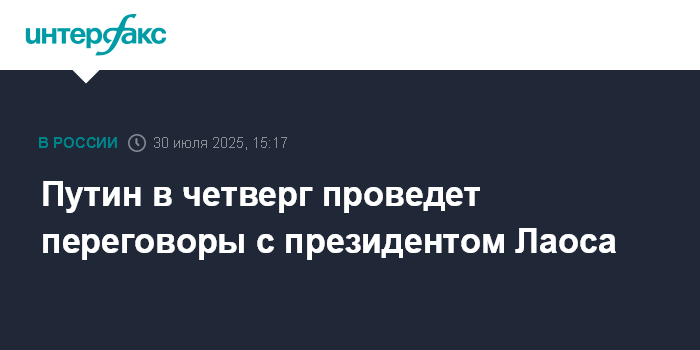 Москва. 30 июля. INTERFAX.RU - Президент РФ Владимир Путин 31 июля проведёт переговоры с президентом Лаоса Тхонглуном Сисулитом, который прибыл в Россию с официальным визитом, сообщила в среду пресс-служба Кремля.
