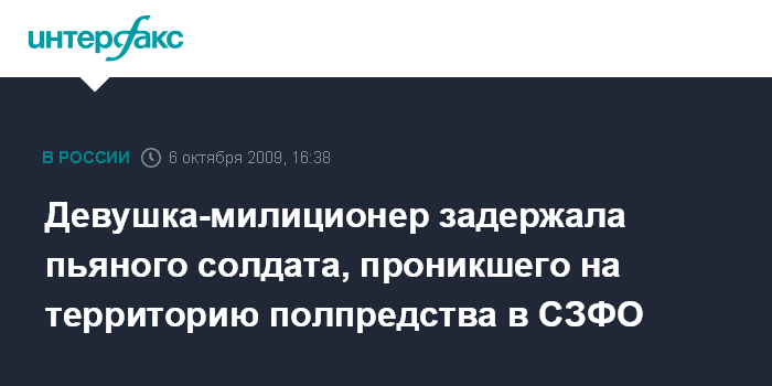 Девушка-милиционер задержала пьяного солдата, проникшего на территорию полпредства в СЗФО