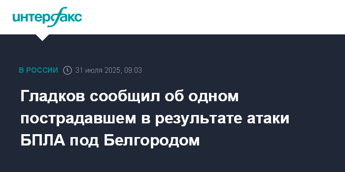 Гладков сообщил об одном пострадавшем в результате атаки БПЛА под Белгородом