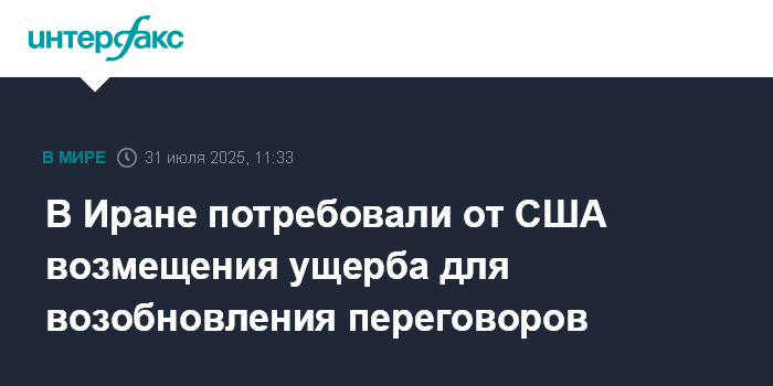 Москва. 31 июля. INTERFAX.RU - Глава иранского МИД Аббас Аракчи назвал условием возвращения к переговорам по ядерной программе компенсацию США ущерба, нанесенного Ирану в ходе конфликта с Израилем.