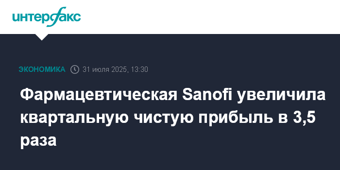 Москва. 31 июля. INTERFAX.RU - Французская фармацевтическая компания Sanofi во втором квартале 2025 года увеличила чистую прибыль в 3,5 раза, выручку - на 6%, сообщается в ее отчетности.