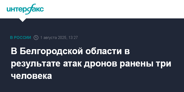 Москва. 1 августа. INTERFAX.RU - В Белгородской области в трех районах днем в результате атак дронов пострадали три человека, сообщил губернатор региона Вячеслав Гладков.
