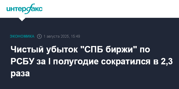 Чистый убыток "СПБ биржи" по РСБУ за I полугодие сократился в 2,3 раза