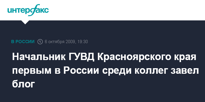 Красноярск. 6 октября. ИНТЕРФАКС-СИБИРЬ - Интернет-блог начальника ГУВД Красноярского края Александра Горового появился во вторник на сайте управления.