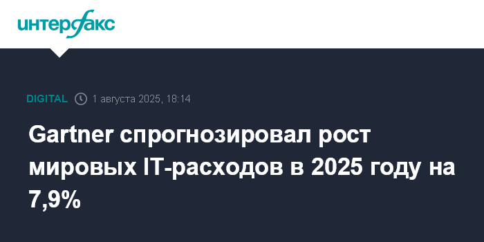 Москва. 1 августа. INTERFAX.RU - Мировые расходы на информационные технологии (IT) в 2025 году увеличатся на 7,9% и превысят $5,4 трлн, прогнозирует исследовательская компания Gartner.