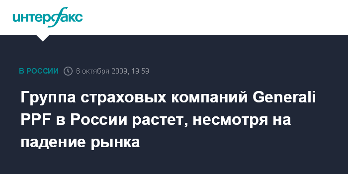 Группа страховых компаний Generali PPF в России растет, несмотря на падение рынка