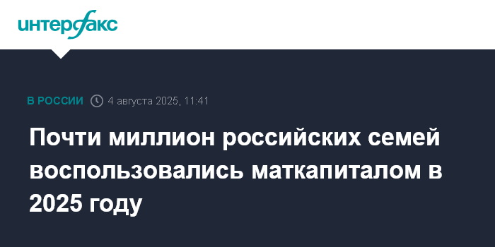 Почти миллион российских семей воспользовались маткапиталом в 2025 году