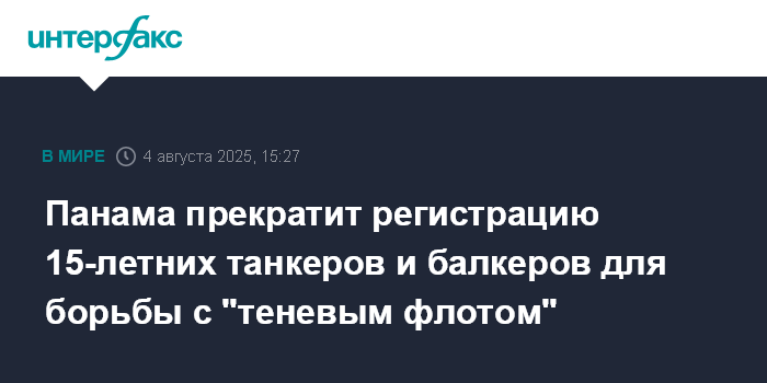 Согласно сообщению Морской администрации Панамы (Panama Maritime Authority, PMA), с 1 августа регистрация нефтяных танкеров и балкеров старше 15 лет больше не производится.