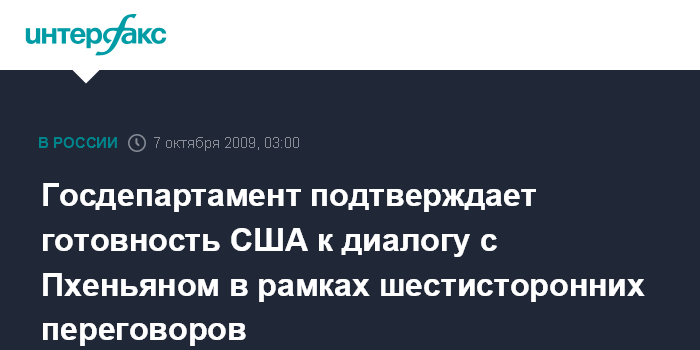 Госдепартамент подтверждает готовность США к диалогу с Пхеньяном в рамках шестисторонних переговоров
