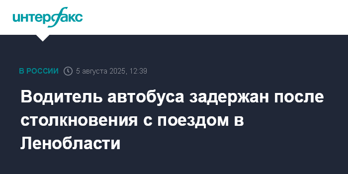 Москва. 5 августа. INTERFAX.RU - После столкновения автобуса и грузового поезда в Лодейнопольском районе Ленинградской области задержан водитель автобуса, сообщает во вторник пресс-служба Западного межрегионального следственного управления на транспорте СКР.