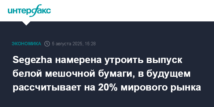 Segezha намерена утроить выпуск белой мешочной бумаги, в будущем рассчитывает на 20% мирового рынка
