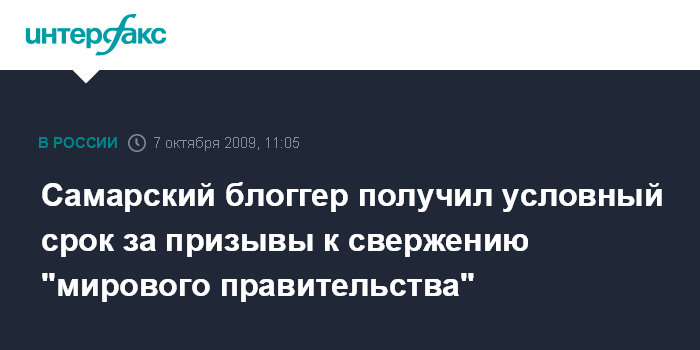 Самарский блоггер получил условный срок за призывы к свержению "мирового правительства"