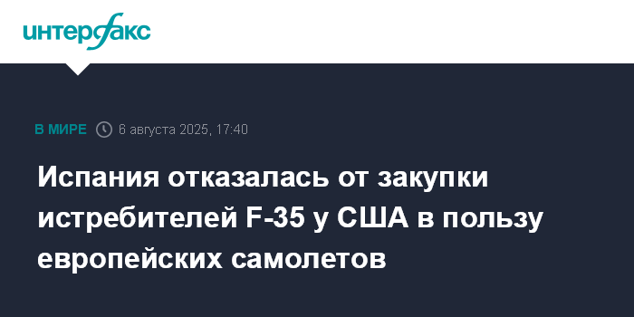 Ранее в этот день El Pais со ссылкой на источники в правительстве Испании сообщила, что планы по закупке американских истребителей F-35 Lightning II заморожены.