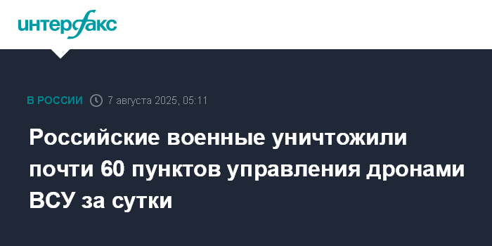 Москва. 7 августа. INTERFAX.RU - Подразделения группировок "Запад" и "Восток" ликвидировали 58 украинских пунктов управления беспилотниками в зоне спецоперации, следует из сообщения пресс-центров группировок в четверг.