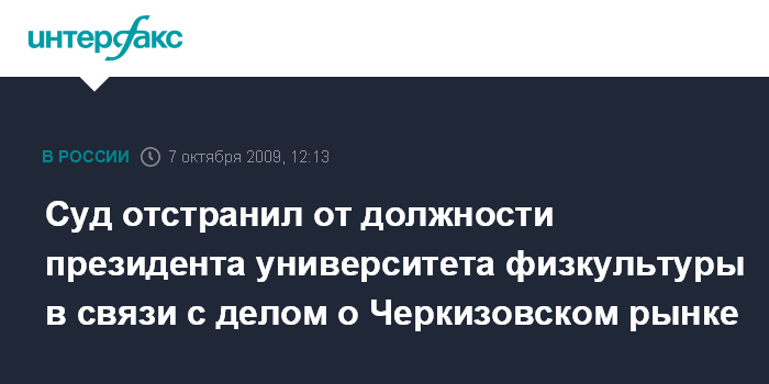 Суд отстранил от должности президента университета физкультуры в связи с делом о Черкизовском рынке