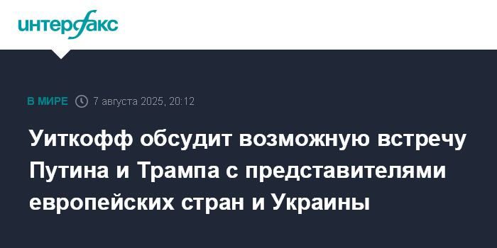 Уиткофф обсудит возможную встречу Путина и Трампа с представителями европейских стран и Украины