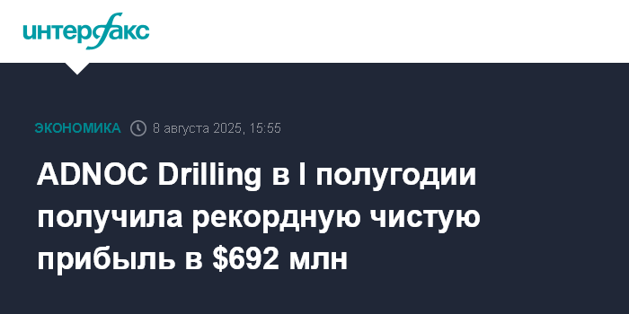 Москва. 8 августа. INTERFAX.RU - ADNOC Drilling в первом полугодии 2025 года получила рекордную чистую прибыль в $692 млн, что на 21% больше, чем годом ранее, сообщила компания.