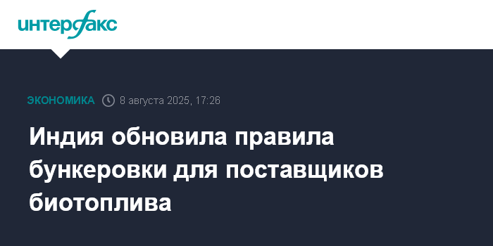 Индия обновила правила бункеровки для поставщиков биотоплива