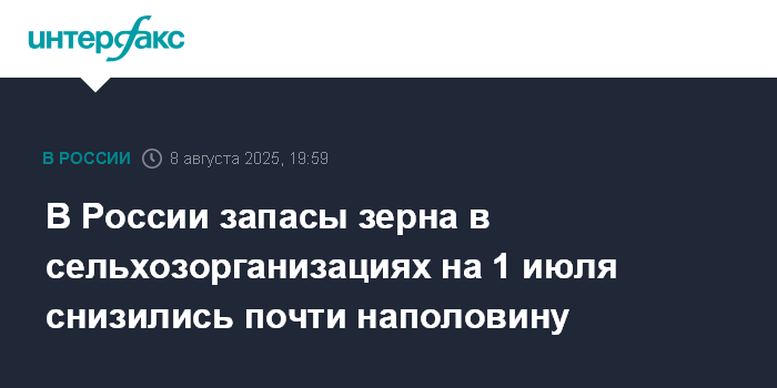 В России запасы зерна в сельхозорганизациях на 1 июля снизились почти наполовину