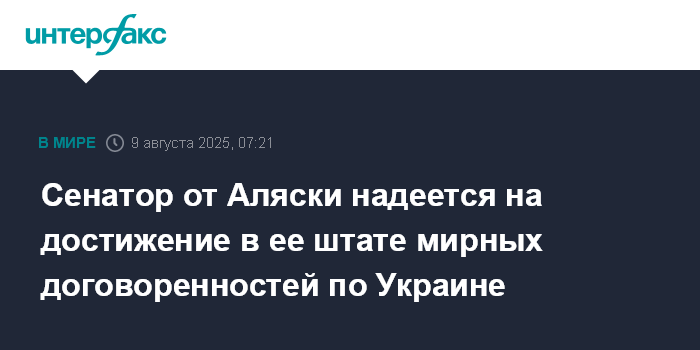 Сенатор от Аляски надеется на достижение в ее штате мирных договоренностей по Украине
