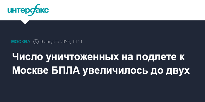 Москва. 9 августа. INTERFAX.RU - Мэр Москвы Сергей Собянин сообщил об уничтожении второго за день беспилотника, летевшего на столицу.