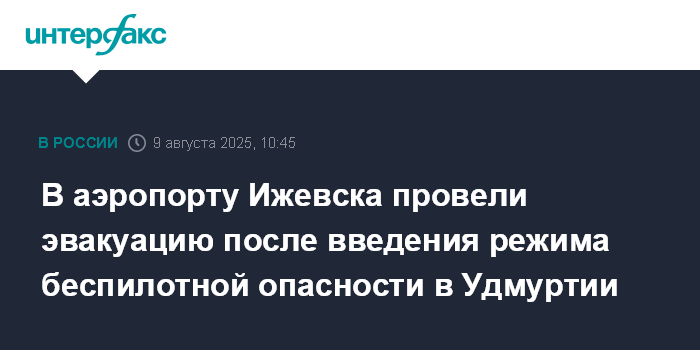 Москва. 9 августа. INTERFAX.RU - Эвакуация прошла в аэропорту Ижевска в субботу днем, сообщил глава Удмуртии Александр Бречалов.