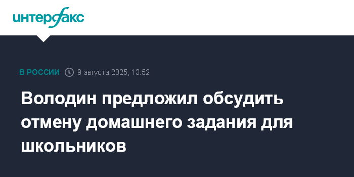 Москва. 9 августа. INTERFAX.RU - Председатель Госдумы Вячеслав Володин считает, что следует оценить эффективность выполнения домашнего задания школьниками в текущем виде.
