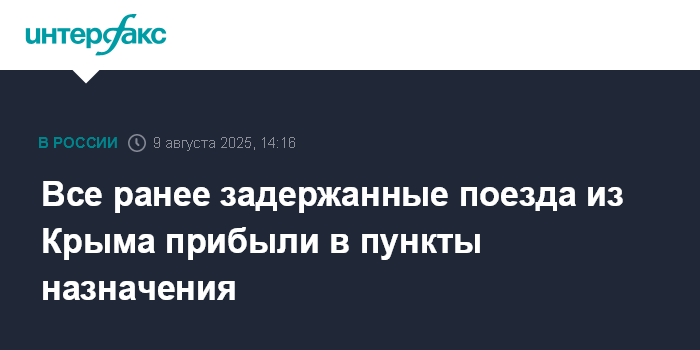 Все ранее задержанные поезда из Крыма прибыли в пункты назначения