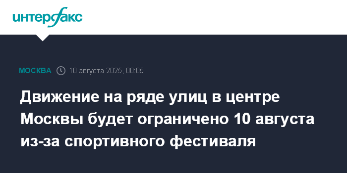 Движение на ряде улиц в центре Москвы будет ограничено 10 августа из-за спортивного фестиваля