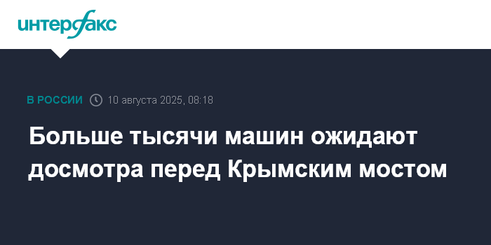 Москва. 10 августа. INTERFAX.RU - Число ожидающих проезда через досмотровые пункты на Крымском мосту машин в воскресенье утром достигло 1130, сообщили в инфоцентре, освещающем ситуацию на автомобильных подходах к мосту.