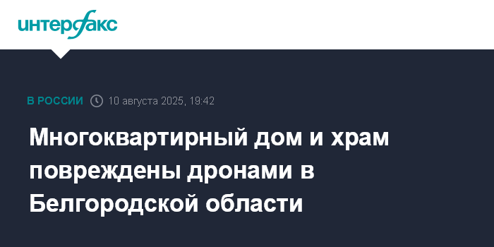 Многоквартирный дом и храм повреждены дронами в Белгородской области