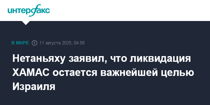 Нетаньяху заявил, что ликвидация ХАМАС остается важнейшей целью Израиля