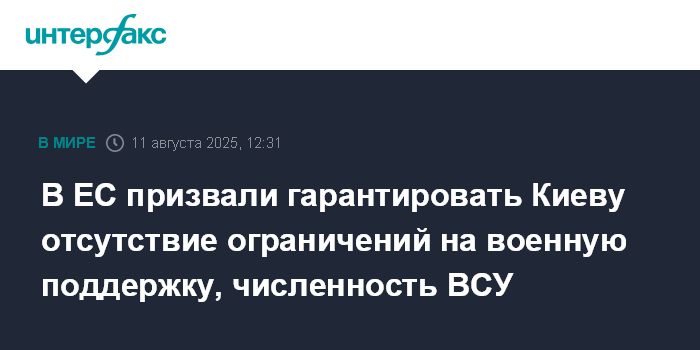 В ЕС призвали гарантировать Киеву отсутствие ограничений на военную поддержку, численность ВСУ
