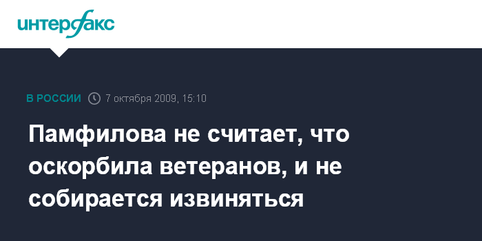 Памфилова не считает, что оскорбила ветеранов, и не собирается извиняться