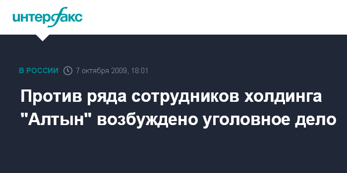 Против ряда сотрудников холдинга "Алтын" возбуждено уголовное дело