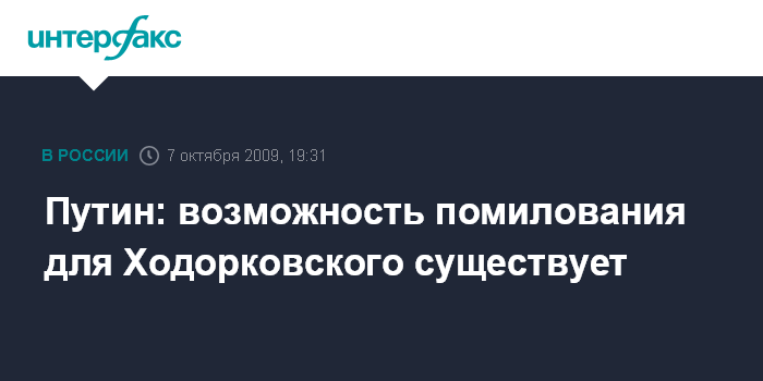 "Отвечая на вопрос о возможности помилования Ходорковского, Путин подчеркнул, что и такая возможность предусмотрена законом, однако, чтобы воспользоваться этим правом, осужденному необходимо полностью признать свою вину и обратиться с соответствующей просьбой", - сказал Песков.