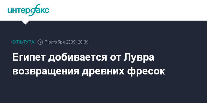 Париж. 7 октября. INTERFAX.RU - Власти Египта объявили в среду, что прекращают сотрудничество с французским Лувром, обвиняя музей в хранении краденых древнеегипетских фресок.