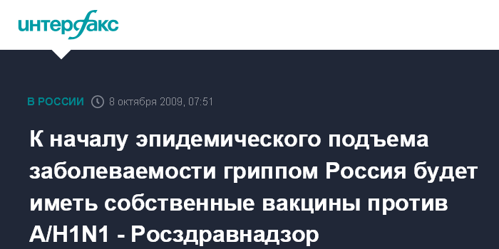 К началу эпидемического подъема заболеваемости гриппом Россия будет иметь собственные вакцины против А/H1N1 - Росздравнадзор