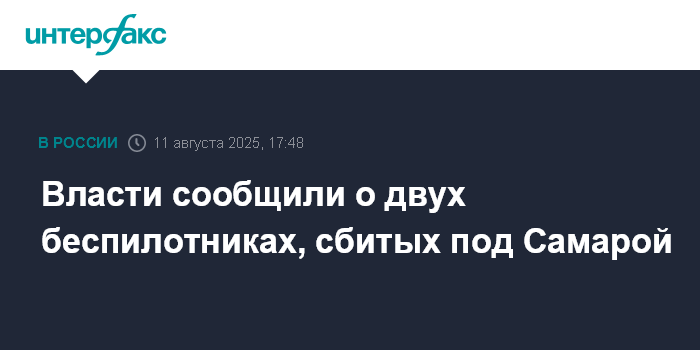 Москва. 11 августа. INTERFAX.RU - Два беспилотника сбили в понедельник в Самарской области, жертв и разрушений нет, сообщил губернатор региона Вячеслав Федорищев.