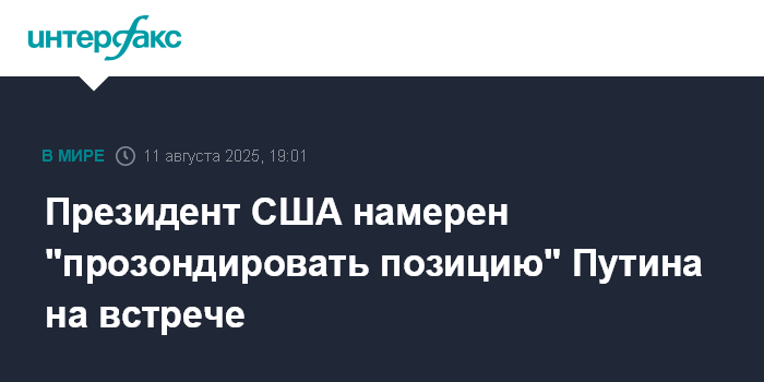 Москва. 11 августа. INTERFAX.RU - Президент США Дональд Трамп заявил, что проведет встречу с президентом РФ Владимиром Путиным, чтобы понять его позицию по вопросу украинского конфликта.