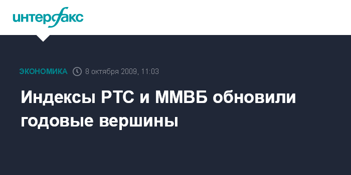 Москва. 8 октября. INTERFAX.RU – Российские фондовые индексы утром в четверг обновили вершины с начала года: индекс РТС превысил 1300 пунктов, индекс ММВБ - 1250 пунктов на фоне улучшения внешней конъюнктуры после публикации неплохого отчета американской компании Alcoa за III квартал.