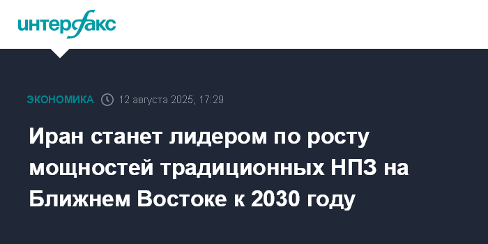 Иран станет лидером по росту мощностей традиционных НПЗ на Ближнем Востоке к 2030 году