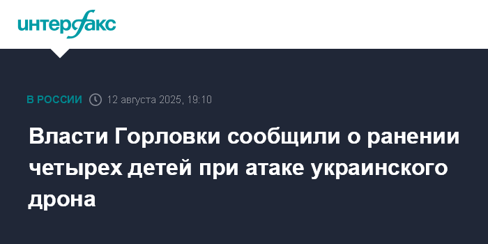 Москва. 12 августа. INTERFAX.RU - Четверо детей пострадали в результате атаки беспилотника в Горловке Донецкой Народной Республики, сообщает мэр города Иван Приходько.