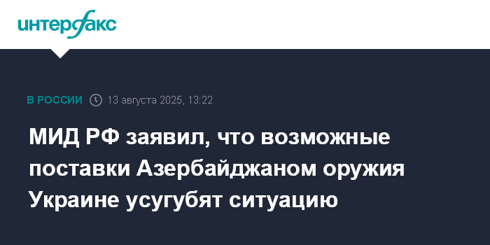 МИД РФ заявил, что возможные поставки Азербайджаном оружия Украине усугубят ситуацию