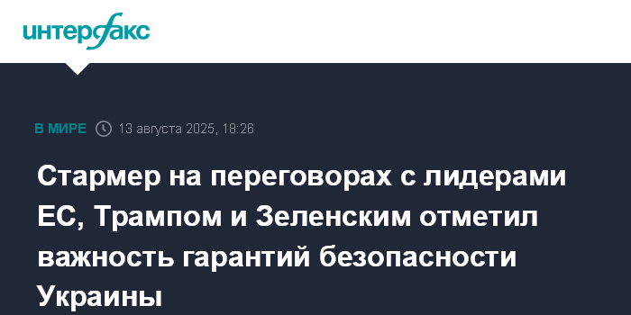 Москва. 13 августа. INTERFAX.RU - Премьер Великобритании Кир Стармер в среду заявил, что Киев нужно обеспечить надежными гарантиями безопасности в рамках украинского урегулирования, сообщает британское правительство.
