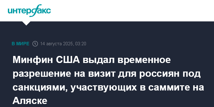 В свою очередь, представитель министерства финансов сообщил CNN, что большинству россиян, которые направляются на Аляску для участия в саммите, уже разрешен въезд в США.