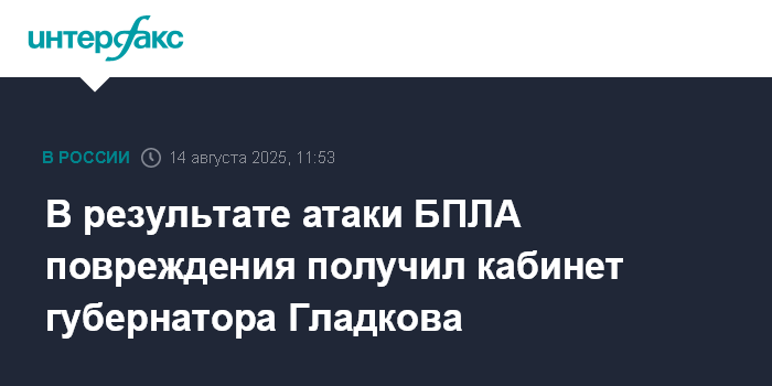 В результате атаки БПЛА повреждения получил кабинет губернатора Гладкова
