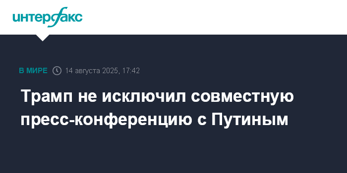Москва. 14 августа. INTERFAX.RU - Президент США Дональд Трамп заявил, что может провести совместную пресс-конференцию с президентом России Владимиром Путиным на Аляске.