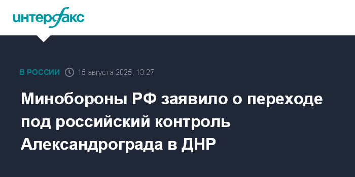 Минобороны РФ заявило о переходе под российский контроль Александрограда в ДНР