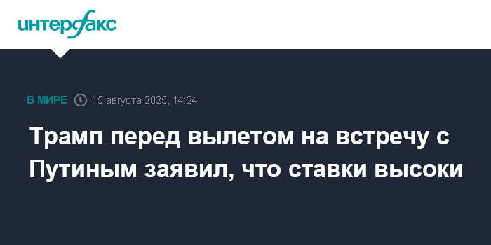 Трамп перед вылетом на встречу с Путиным заявил, что ставки высоки